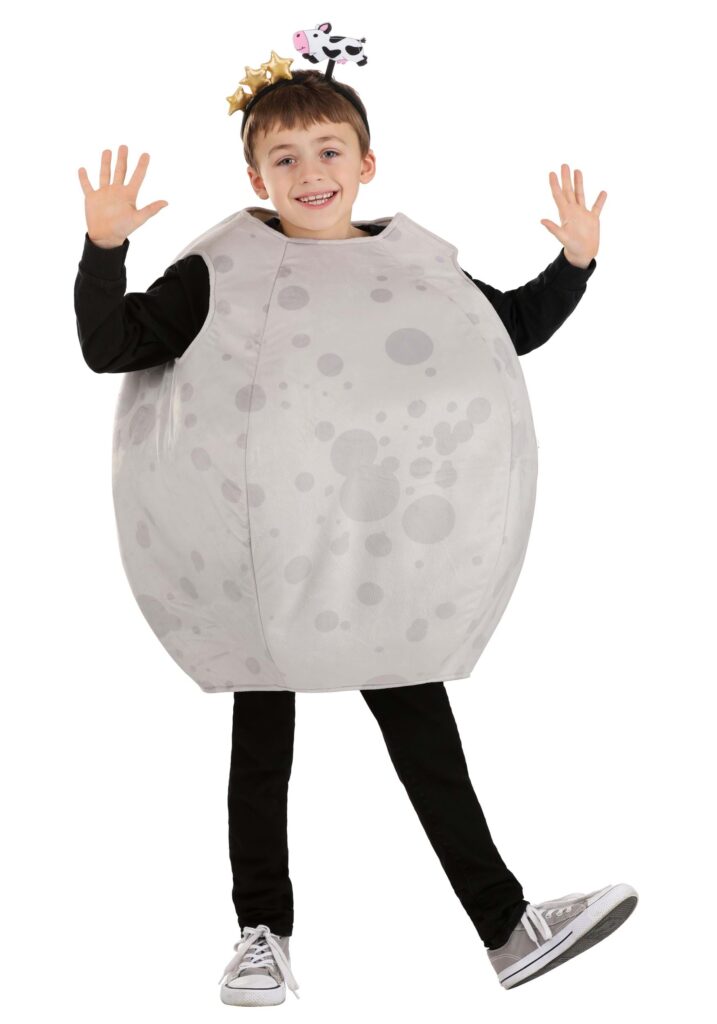 This exclusive Full Moon Costume for Kids isn’t made of green cheese – just awesomeness! The spherical, knee-length tunic is padded to keep its shape. It has holes for your head and arms and can be worn over lightweight street clothes. Its gray fabric is printed with an irregular pattern of darker circles that look like lunar craters. Three gold-tone stars and a mini jumping cow figure are attached to the headband. Mother Goose would love it! Launched into Orbit Forget about the man in the moon – you’re now the kid in the moon! If you love outer space and want to explore it someday, start by dressing as a famous outer space object. This costume makes a fantastic choice for plays, school events, and Halloween parties. It’s a good thing that it doesn’t actually control the tides like the real moon does. You wouldn’t want to flood the neighborhood while trick-or-treating. Your chocolate would get all wet!