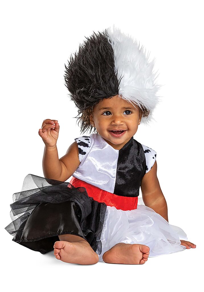 Transform your little one into the most stylish villain to ever hit the silver screen! This Disney Cruella Infant Costume brings all the charm and sass of the iconic fashionista, wrapped up in an outfit designed for the tiniest of trendsetters. Whether you’re ordering this costume for your little one’s first Halloween or a themed event, this look guarantees your baby will be dressed to impress from the very beginning.