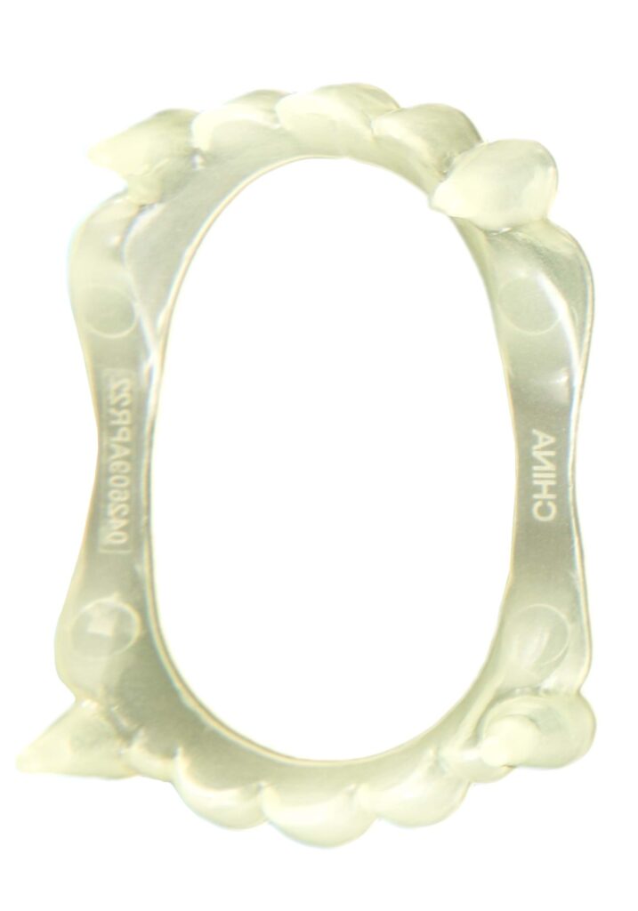 Prove your point with our exclusive Glow in the Dark Vampire Teeth Accessory! The classic costume accessory looks and wears like any other traditional set of white plastic vampire fangs, but these one-size-fits-most chompers shine when the lights go out! Paired with an updated vampire costume, these Made By Us fangs are sure to make jaws drop, whether glowing under blacklight or adding sparkle to a trick-or-treater’s greeting. And when worn with a standard vampire look, these easy-to-use teeth ensure no one counts Drac out for being too old school!