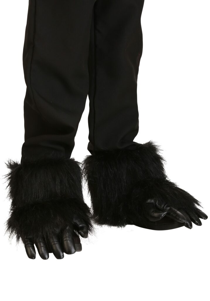 Product Details The child gorilla foot covers are a Made by Us accessory so they’re created from high-quality materials and expertly crafted. Covered in black, synthetic fur, the pull-on slippers are stuffed to appear realistic and they feature plush gorilla toes. GO BANANAS! Pair these child gorilla foot covers with any gorilla costume to create an authentic jungle look that will drive people wild. Grab an inflatable banana for good measure!