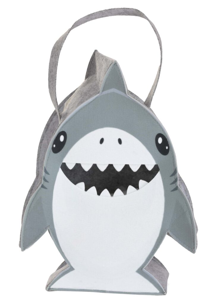 Stuff this exclusive Great White Shark Candy Bag full of Halloween sweet treats! The gray and white felt treat bag is shaped like a shark with two side fins and one tail fin. The front is printed with shark graphics, including eyes, gills, and nostrils. A mouth-shaped opening in the front is lined with felt teeth and provides the perfect place to stash your candy. Ocean Friend Accessorize an ocean-themed outfit and carry all of your candy conveniently thanks to this cute bag! It’s so much fun that you can use it for dress-up and carrying your important belongings all year long.