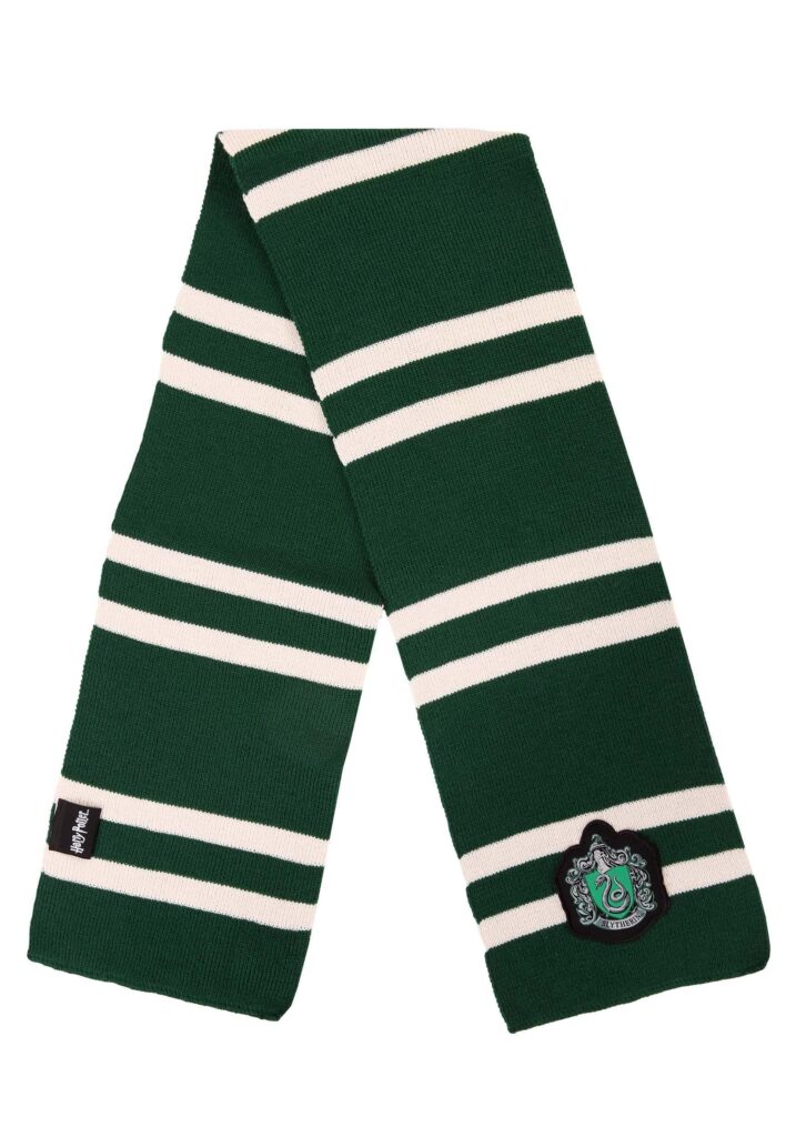 This licensed accessory pairs bands of emerald green and white knit in bold stripes that make a statement. The Slytherin house crest is embroidered on the bottom, and a small official “Harry Potter” tag helps you know it’s legit Hogwarts gear! Pair it with your school robes and cheer on your Quidditch team without catching a chill.