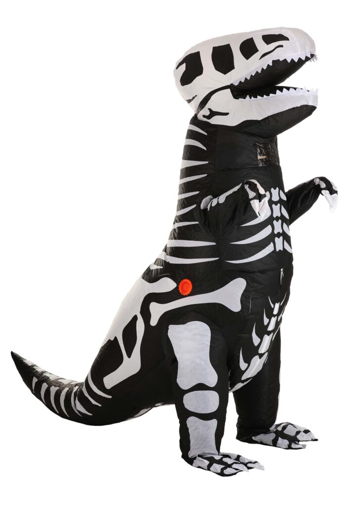 Silly SpookyWe’re convinced. Inflatable T-Rex costumes are never not funny. Just the thought has us trying to suppress a giggle. And, since you’re here, we assume there’s someone in your life that feels the same. Specifically, a kid. Because we’re sure that you chortle at videos of a groom’s best man showing up to first looks dressed as a T-Rex like the next person.And clips kids dressed as the inflatable dino chasing their paleontologist-dressed parent likely get you hunched over from cackling alongside your kid that is definitely imagining doing the same. But it’s kids that dream up ways to make something spooky-silly into something silly-spooky. At least, that’s what inspired this frighteningly funny Kid’s Inflatable Skeleton T-Rex Costume!