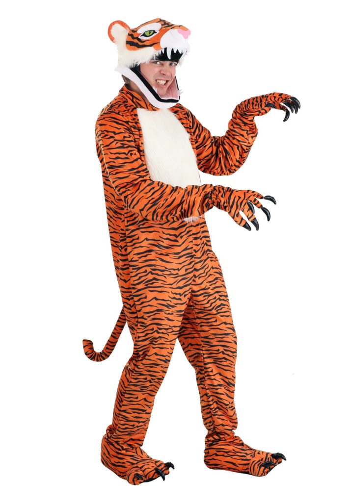 Finding the animal in yourself has a lot of advantages, not the least of which is knowing that this Adult Tiger Jawsome Costume is perfect for you! You will love the accurate details of this costume, from the size and placement of the teeth to the beautifully primped tail. The claws on the hands and feet look wickedly sharp, just like real tigers’ claws do! You will love how you look and feel inside this awesome monkey err, tiger suit! You sure will look fur-ocious! Striped Down.