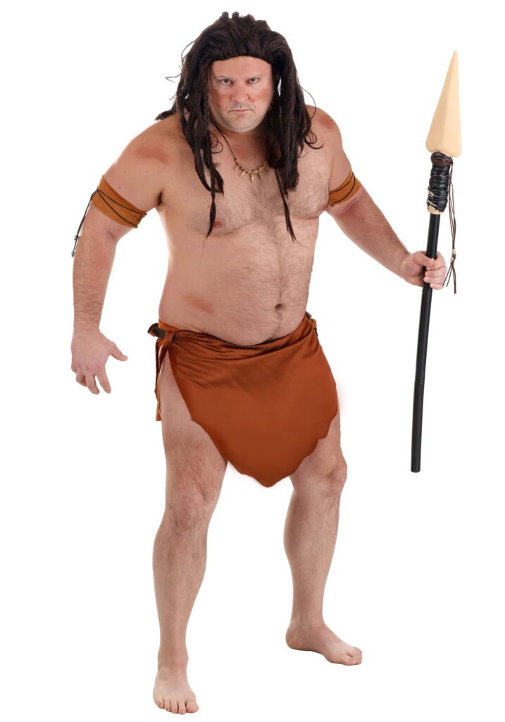 Embrace your wild side with an exclusive Adult Jungle Man Plus Size Costume! The jungle is no place for a three-piece suit, which is why the brown loincloth with its longer front and back pieces is your best option. Unlike previous jungle men’s attire, this loincloth comes with a pair of briefs, which is much more convenient when you’re swinging through the treetop vines. The pair of brown fabric arm bands are decorated with brown cords strung with blue beads. Goodbye, Civilization.