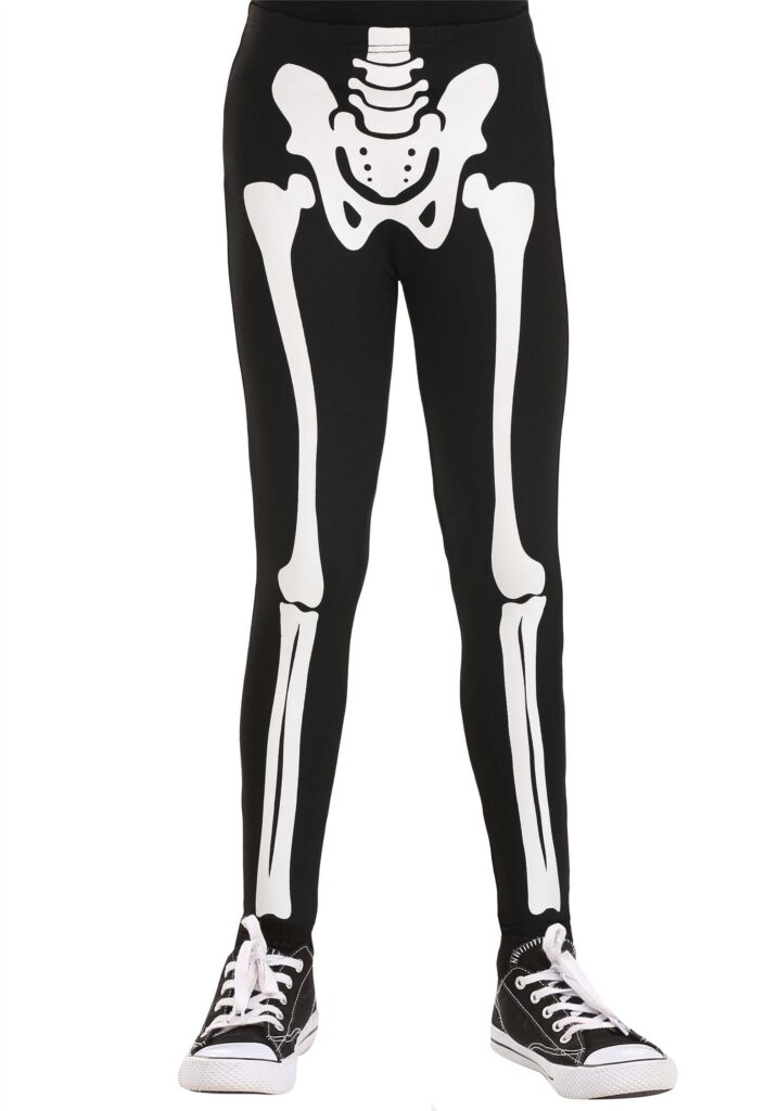 Add a spooky touch to your outfit courtesy of these exclusive Costume Skeleton Leggings for Kids! Made of a breathable poly-spandex stretch knit fabric, the slim-fit black leggings are printed on the front with white bone graphics. The elastic waistband makes the leggings extra comfortable. Wear them with your favorite everyday top or pair them with a skeleton shirt! No More Calcium.
