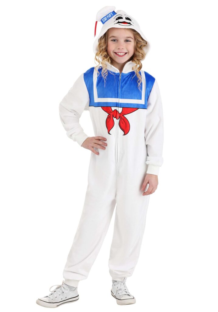 Help your kiddo not only gather a ton of candy but also look sweet as heck with this officially licensed Stay Puft Marshmallow Man costume for Kids! This is a Made By Us jumpsuit that is comfy to wear and easy to climb into, plus it is all inspired by the look of the iconic character from Ghostbusters.The plush costume jumpsuit features an all-white design along with blue and red printing based on Stay Puft’s sailor style. A front zipper keeps the costume fitting fine and the illustrated hood features the look of the Stay Puft Marshmallow Man’s face. Topped with a puffy sailor hat and red ribbon, this is sure to be a favorite for Halloween outings or for nights in with your favorite movie marathons.