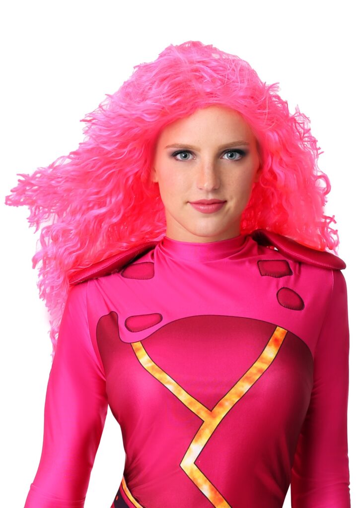 No one can stop Lava Girl’s fierce fashion sense! The hot pink outfit and molten lava accents really bring out her fiery powers, but her hair truly puts the finishing touch on her smoldering style. If you’re planning on cosplaying as Lavagirl, from The Adventures of Sharkboy and Lavagirl, then you had better have her electric, hot pink hairstyle! This Lavagirl wig is an adult sized accessory that recreates the look of the intense superhero. It’s made out of pink synthetic fiber, shaped into a long, wavy hairstyle. It fits with a mesh net on the interior, which stretches to fit your head. Just pair it up with your Lavagirl costume and you’ll be ready to save Planet Drool in no time.