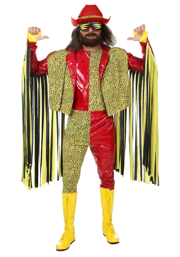 When you’re rising to the top, you need an outfit that’s going to announce your arrival as soon as you enter the room. This bright, show-stopping costume includes a sleeveless shirt that is fifty percent faux leather and fifty percent leopard print.You’ll also get the zippered red jacket with luxuriously long fringe that no one but a legend would dare to wear. Paired with the included pants, your presence at any costume party will be one that no one will ever forget. Top it all of with Randy’s leopard print trimmed cowboy hat and the hand wraps. If you want to go overboard (of course you do) finish the look with a large pair of ski goggles or wraparound sunglasses to hide the power that lies within your eyes. Oooooh Yeeeeah! Show up in this costume and you’re sure to go home from any costume party with the grand prize, even if they weren’t giving one out. The host will go out and get one for you, that’s how good this is. Pair up with a perm haired Elizabeth and the tanned and toned Hulk Hogan so that people can relive the wrestling dramas of the past. So, warm up your voice. You might not be expected to slide into the ring but you oughtta be able to let the mighty “Ooooh Yeah” loose!