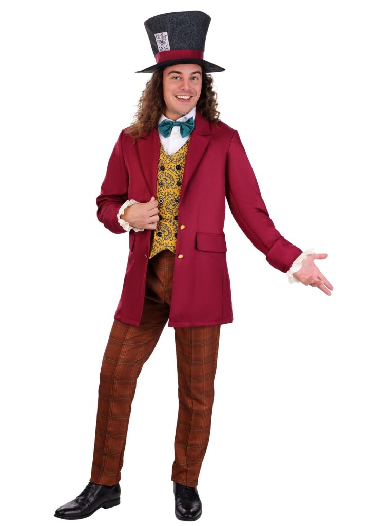Potential applicants to the position will be delighted to know that we can supply you with this Mad Hatter costume. This is a Made By Us exclusive that includes a pair of plaid pants and a vest front with printed designs appropriate for Wonderland wackiness. The maroon jacket gives you a lovely formal quality and the green bow tie finishes off the unique color palette required of a Mad Hatter. Of course, this look would not be complete without a top hat. This one features a maroon hat band and a printed tag on the side. All you need to supply is insanity! BEWARE THE INTERVIEWOnce you acquire this Mad Hatter costume, you’ve actually already got the job. You’ll be the official Royal Hatter of Wonderland. Team up with any other Wonderland character to ensure the best of possible tea parties. Just watch out for the Queen of Hearts. She may want to interview you and that tends to go… poorly.