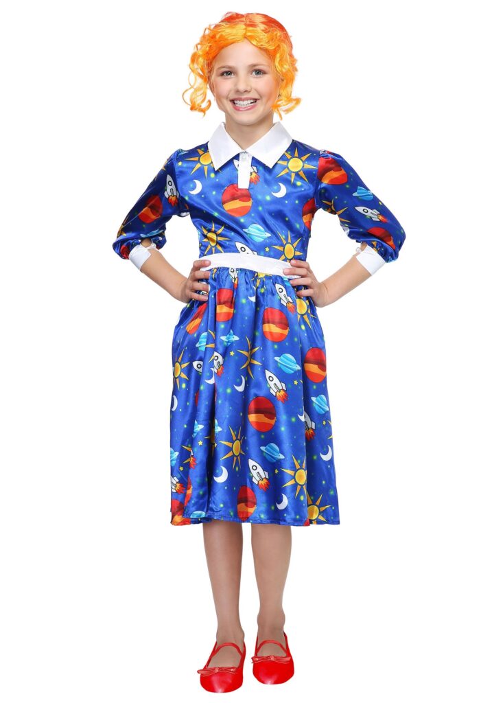 Your little girl will love how it feels to wear the colorful clothes of everyone’s favorite science teacher in this science Halloween Costume. The blue space-themed ensemble doesn’t have to be limited to Halloween. the dress would be a hit at this year’s Science Fair and to that field trip to the planetarium, come to think of it.She can even bring along Liz the Lizard to carry her emergency science supplies (our Liz hand bag is sold separately). Your little one’s school bus might not shrink down or shoot into space, but this costume is sure to inspire your kiddo to take chances, make mistakes, and get messy!