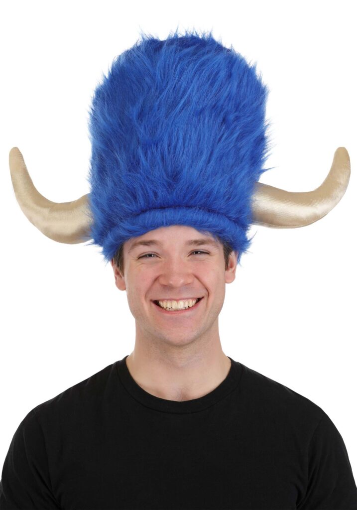 If you’re the Grand Poobah you’ve got all the power. At least, the power to kick Fred Flinstone out of the Buffalo Lodge club for showing home movies instead of those risque flicks they were hoping for. So when you’re wearing this hat, people better not bore you or you just might kick them out of the coolest gentlemen’s club in town. At least, the coolest gentlemen’s club in which everyone is wearing a blue buffalo cap. Which is to say, in this day and age, not many! So they’d better be careful not to bore you!Live up to you prehistoric dreams in this whimsical blue fuzzy lodge hat. It incorporates elastic towards the back of the hat, so it fits comfortably on the head. This hat istretches from 22 to 26 inches circumference, and is 11 inches tall. It has soft blue fur and stuffed horns on either side to complete the Flintstones Buffalo Lodge member look. See our other Flintstones accessories.
