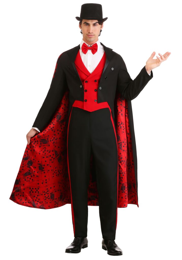 Our in-house designers decided that it was time that magicians got an upgrade. This Made by Us magician costume features a red and black suit that has everything to make you feel smooth. The double buttoned vest matches the black and red dress pants. And of course, it wouldn’t be a magicians ensemble without a set of coattails. The lush cape really shows off the upgrade we’ve given this classic costume. It has a scatter pattern of cards set on a beautiful red background to make an impression when you make your entrance to a room via door or puff of smoke. In it For the Bunny.
