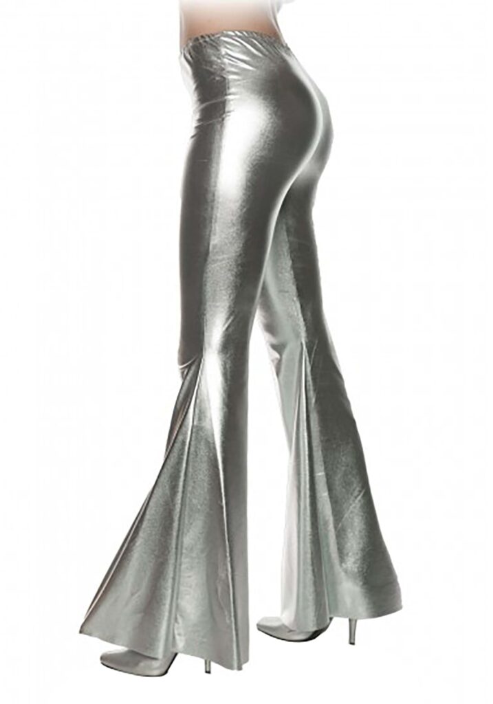 Catch the boogie fever when you wear your Metallic Silver Bell Bottoms for Women! The long pants have an elastic waistband and are made of comfortably stretchy silver fabric that will showcase your every more. They’re fitted from the waist to the knees, then flare into dramatic bell bottoms from the knee to the ankle. Far Out Fashion These groovy pants will make a disco outfit or a retro party look shine brightly on the dance floor! Get yourself a cute top and a pair of awesome heels and go show them how it’s done.