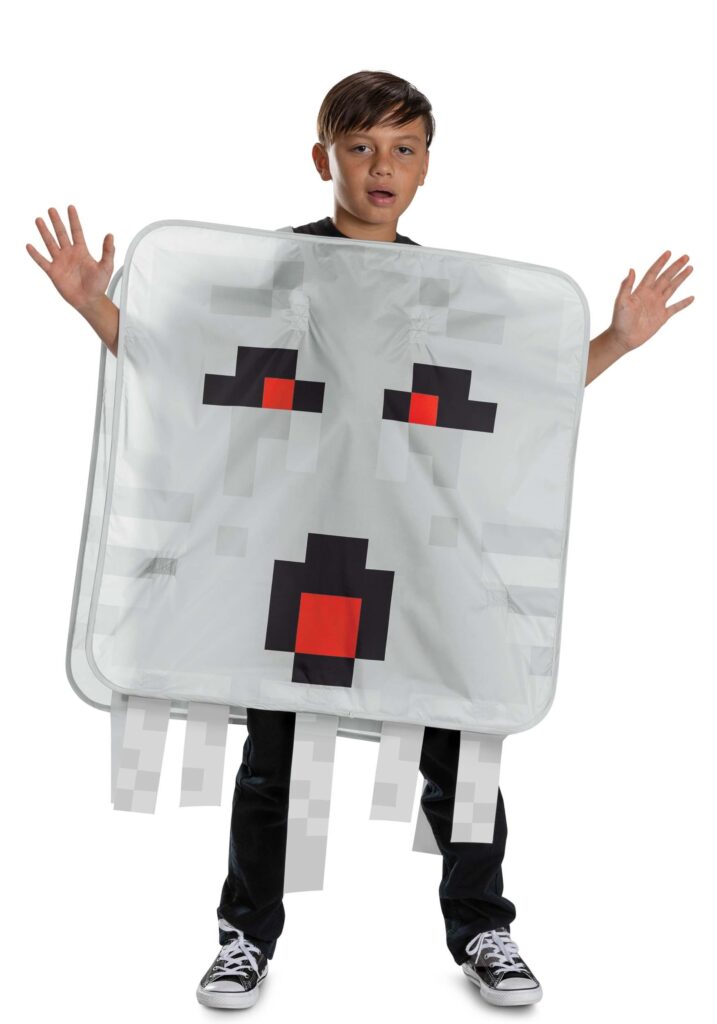 This officially licensed Minecraft costume captures the blocky look of a classic Ghast with a clever pop-out panel design. Lightweight and structured, the tunic-style body features those haunting red eyes, open mouth, and dangling tentacle flaps for that signature ghost-squid aesthetic. It’s easy to slip on over everyday clothes and stays comfortably in place with shoulder straps, no potion of swiftness necessary.The back and sides continue the printed details, making sure your little Ghast looks game-accurate from every angle. Best of all, the 3D shape pops out for that full “floaty menace in the sky” effect.Fireball Not Included (But the Fun Is)Whether it’s for a costume contest, trick-or-treating, or an afternoon of serious roleplay, the Minecraft Ghast “Pop Out” Costume brings the spooky side of the Nether to life, without any risk of actual creepers. Just watch out, this look might make people shout, “Run! It’s a Ghast! “ in the best way possible.