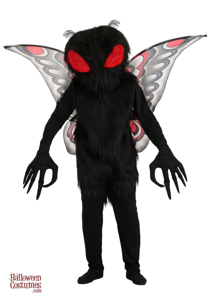 Flap into any Halloween party with the most original costume when you wear this exclusive Mothman Costume for Adults! The full-length black jumpsuit has soft faux fur on the torso to simulate a moth’s downy body. The oversized headpiece is also covered in faux fur, except for two huge red eyes that also serve as viewing ports so that you can see where you’re going. A pair of gloves with long fingers and hooked thumbs adds to the costume’s creepiness. The red, grey and black wings are stretched over wire to give them body. FYI, flying with them has not been tested. Insidious Insect.
