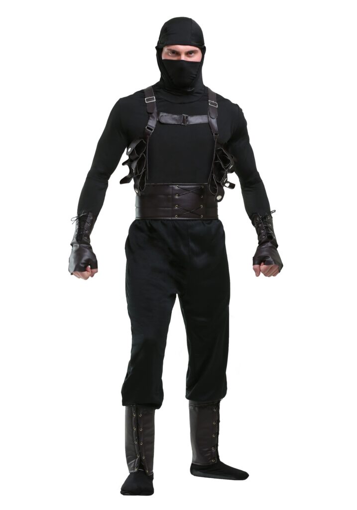 This exclusive outfit gives you the full shinobi experience. The costume comes with a black shirt and pant set, perfect for hiding in the shadows. It also includes faux leather leg guards, arm gauntlets, and a belt. Additionally, it features a chest harness for carrying your ninja gear, such as shuriken, kunai, and nunchaku. The costume also comes with a ninja mask, ensuring your identity remains hidden. The detailed design ensures you look the part, whether you’re at a costume party or a themed event.Secret IdentityWearing this ninja gear allows you to fully embrace your secret life as a ninja. For added effect, consider a dramatic unmasking to reveal your true power. Pair the costume with ninja weapon accessories to complete the look and be prepared for any challenge. This costume is not only fun but also practical, allowing you to move freely and comfortably while maintaining your stealthy appearance. Perfect for Halloween, cosplay, or any event where you want to showcase your ninja skills.