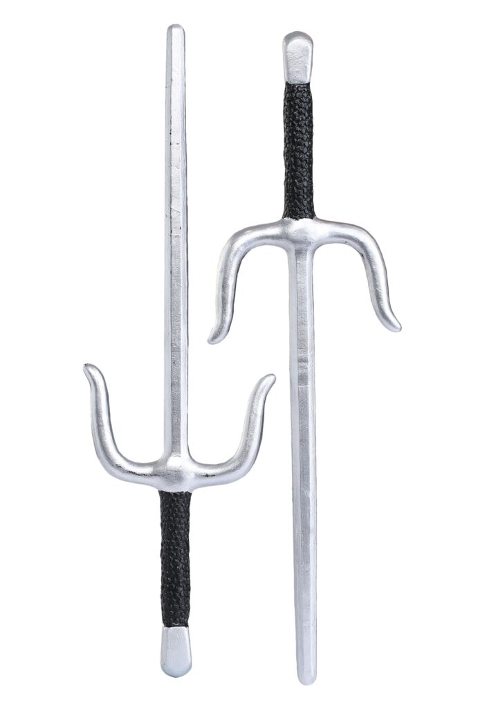 The sai is a vastly misunderstood weapon. You may have seen certain cartoon characters using them. They were probably slicing apart a robot or something, but most sai don’t even have a blade! It looks a little like a big dinner fork, meant for poking the vegetables on some kind of giant’s plate! But, believe it or not, the sai’s history begins as a defensive weapon. It started out as a Japanese weapon called the “jitte” (pronounced “jeet-teh”). It was used to deflect and trap sword attacks, so it was a pretty handy ninja weapon back in feudal Japan! They added a point to it and an extra prong to the other side and viola! the sai was born.Of course, you probably came here to get a cool toy weapon to pair with your ninja costume and not for some weird history lesson on Okinawan weapons! Well, that’s where this exclusive toy weapon set comes into play.