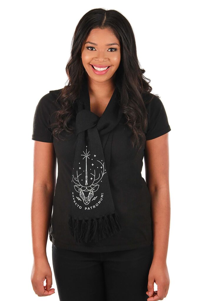 What’s Your Patronus?We love the varied colors that paint Hogwarts merch, but you can’t see any of that when you’re creeping around those hallowed halls, pondering all the cool people who had crept around before you! To that end, we have something for you and all your lumos-lit nights in the corridors: this Patronus Glow Knit Scarf. It’s a warm scarf that fits most, with a printed stag on the end that glows in low light! Just drape, twist, or tie all of this scarf in whichever way you need to to get your prospective Yule Ball mate to notice. In this, we don’t think it will be much of a challenge anyway. Who could ever turn down a bat of those kind eyes, lit by the cool glow of a stag?