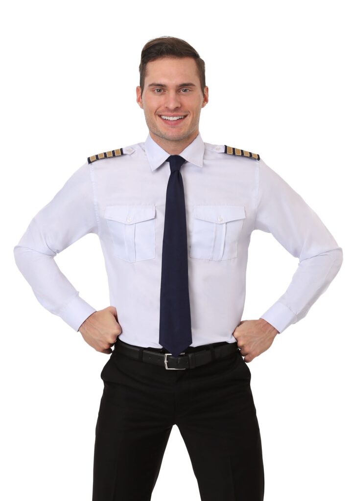 Design & DetailsFortunately, our in-house designers have thousands of hours logged at the drawing board and have crafted this exclusive Pilot Shirt and Tie to give you a wing up over the rest. This long-sleeved button-up shirt has a pristine collar, dual pockets, and blue and gold accents at the shoulder to mark you as an official pilot. Keep things professional with the navy blue tie and you’re ready to fly.A SHORTCUT TO THE SKIESIt takes a long time and tons of cash to earn your pilot wings. While we’re not sure it is considered 100% official according to the FAA, you’ll at least look the part with this exclusive Pilot Shirt and Tie set!