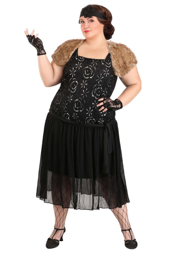 Do you sometimes imagine yourself as a high society lady? We can see it, you’re looking at flappers, aren’t you? People from the twenties had high society down to a T. It was the gilded age so people really went all out. In high society, nothing was untouched, left boring and untextured.Cars had only been around for a short amount of time before people were driving around in shining Speedsters in bright colors with giant hood, sculpted to perfection. Those perfect cars carried around elegant people, their hair in perfect waves, faces powdered and rouged, and shoulders wrapped in furs. Those elegant people were headed to the theatre to see the talkies on the silver screen or the speakeasies to sip illicit hooch while listening to that new kind of music they were calling jazz. This age was all about sound, texture, and energy. So, it’s no wonder why we still look up to the fashion of that time.Maybe you’re going to a 20s style concert or party, maybe you’re simply choosing wisely for your next costumed affair, either way, you’re sure to love this Charleston flapper ensemble. The dress has a dropped waist with a sash and a pleated skirt. The shoulders are covered in faux fur for that 20s style level of sophistication. With the flowered headband, you’re just about ready for your first night at the speakeasy or whatever high society people like you do.