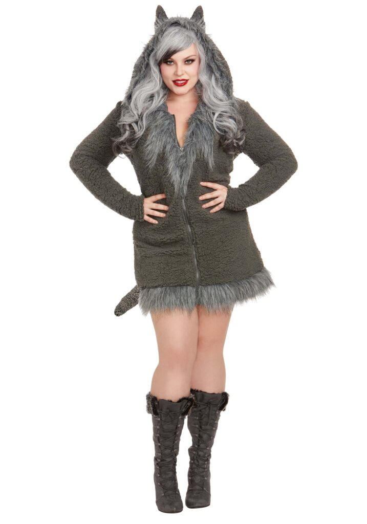 Product DetailsFinding the perfect costume for a night out is easier than ever when you have this awesome Women’s Plus Size Cozy Wolf Costume. This faux fur trimmed dress has a cool and classic look that is both flattering and stylish. The hem and hood are rakishly wild, while the padded tail and ears add a lot of characteristic flair to your look. The two gray tones of the costume will be a great backdrop for you to show off your lone wolf attitude, but you will have to add your own claws!Feeling LupineWhen you are looking for the perfect costume to show off your wild side, then you are in luck. This Women’s Plus Size Cozy Wolf Costume has it all, from fierce fashion to wild style. Just make sure you watch out for the rest of your pack!