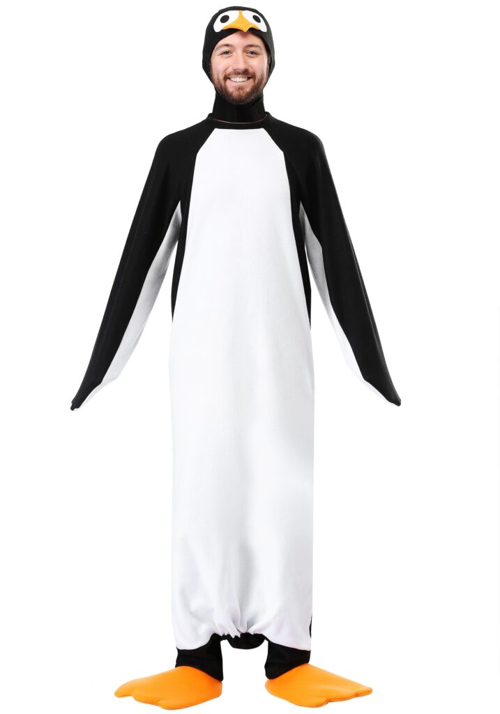 Penguins are the best-dressed animal in the entire animal kingdom. We should all be so lucky to be born in a black and white tuxedo! No, instead we hav to go out and BUY a tuxedo when some big party comes around. Or instead, you could just wear this penguin costume and say you misunderstood the invitation. That sounds way more fun to us, but then again we’re a costume company! Your mileage may vary with how well this costume goes over at a fancy party.But since you’re here and you’re looking for an awesome costume, let us try and pitch this penguin costume. First, it looks exactly like a penguin, which is really what you want out of a costume like this. It’s got a big white front and black on top with these flipper sleeves. The headpiece lets your true face shine through while also giving you a cute penguin face on top of your old noggin. See, this penguin is not only good looking, he’s also innovative. Where should you wear such a COOL costume? Well, the Arctic would make sense and while this thing is pretty comfortable we don’t know if it would stand up to that much cold. No, we’re sticking with our original idea and say that this thing would be perfect for a black-tie affair in Hollywood, or that kind of thing. Penguins… is there anything they can’t do?