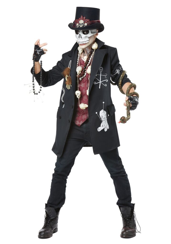 At least if you lose your soul, you can be sure that you look suave to the end in this costume. It’s basically a suit jacket with quite a few stylish embellishments. Who could notice any of your flaws when your face is hidden behind a skull mask and your body is covered with pins and the appendages of innocent apes? That’s right, no one! You’ll no doubt be the most impressive Voodoo Dude at your party.