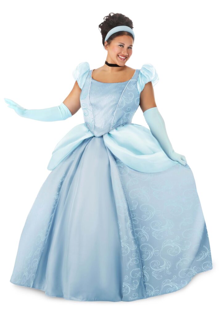 Your wish for an easy and magical evening out will be granted with this plus size officially licensed Disney Cinderella Costume. While our Made By Us design team may not be up to the same skill as the Fairy Godmother, we do delight in creating looks inspired by our favorite characters.This blue satin dress creates an enchanting silhouette for all your costume needs. The sleeves are trimmed with organza and the whole dress features pearl trim, shining sequins, and an organza bodice overlay. The sparkling skirt’s tone on tone highlights bring just a bit of magic to the look, too, so pull on the blue gloves and be ready to twirl your way through the night!