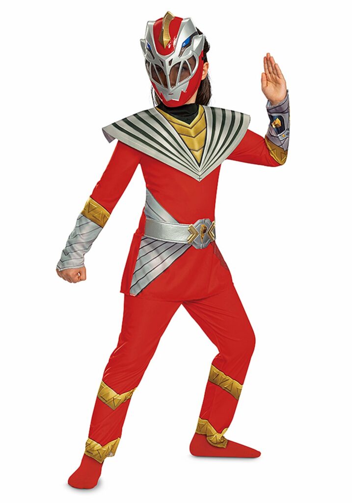 Design & DetailsThis Red Ranger costume blends comfort with all the fierce details a hero needs. The jumpsuit fastens easily with a hook-and-loop closure at the back, while printed graphics on the sleeves and legs bring her Ranger look to life. A sewn-in belt with a vinyl buckle adds a bold finishing touch. The foam-backed collar secures snugly with hook-and-loop fasteners while the elastic-backed waist makes for a comfy fit. The plastic mask features a smoky vision port and inner foam padding for a cushy feel, while an adjustable elastic band keeps it perfectly in place during every heroic move.It’s Not Over, Yet!In the world of the Power Rangers, the dangers are never done. Your little Red Ranger doesn’t have to put away her costume just because the Halloween decorations are back in storage! Great for everyday play and themed events, this comfo