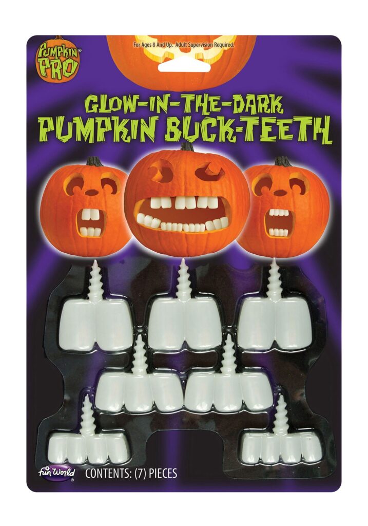 You’ll get seven glow-in-the-dark teeth for your jack-o-lanterns with this hilarious set. Whether your pumpkins are big and tall or cute and round, you’ll find the size variation in these teeth can be used for a funny buck-toothed look or odd undersized teeth. These teeth easily can screw into a carved mouth to give any jack-o-lantern a cartoonish quality that people will remember. Family Fun.