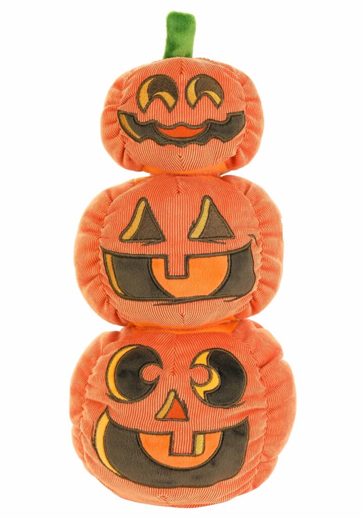 This adorable dog squeaky toy will help any pet get in the mood for the season! The toy is made out of corduroy fabric and is shaped like 3 Jack-o-Lanterns stacked on top of one another. The pumpkins are held together by hook and loop fasteners, so they can be detached into 3 separate pumpkin toys! Each one has a cute face designed into the front of it and the littlest one even has a stem on the very top!And what’s a good dog toy without a squeaker? The smallest of the pumpkins has a squeaker, so you can get your pup ready for a game of fetch just by squeezing it! It’s really the perfect Halloween pet toy for any pup who’s ready for the season!