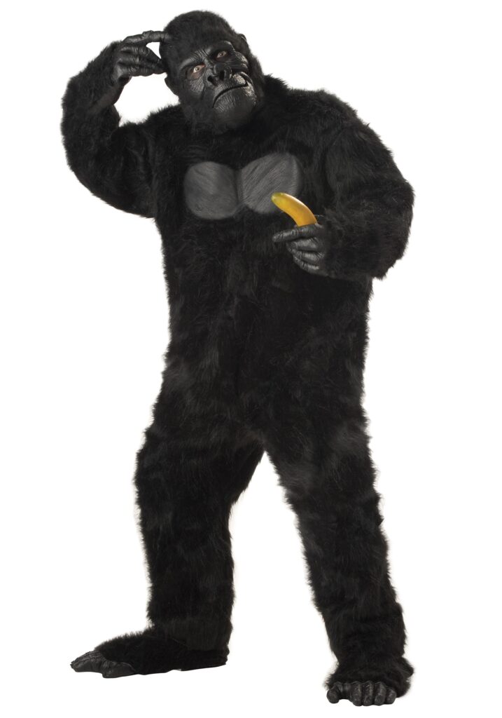 The perfect way to get your daily dose of potassium!Are you working on ways to make sure that your heart stays in the best condition possible? If you’re looking to maintain healthy blood pressure then you need to feast upon as many potassium rich foods as possible and one of the most potassium filled foods happens to be…*drum roll, please*…bananas! If you’re not in the habit of eating a banana everyday for breakfast, then we know a fun and easy way to crave the scrumptious bright yellow fruit.Wake up every morning and jump into this plus size realistic gorilla suit. This costume will make you want to gobble down a banana as soon as you get out of bed. You’ll receive a faux fur jumpsuit with a molded chest piece and a tie that fastens at the back of the neck. The included mask is a fur hood which covers the entire head and also features a vinyl face. Finally, put on the gloves and shoe covers and you’ll be ready to turn on your monkey mode. You’ll be jumping all over the house, yelling, “”ooh-ee-ahh-ahh-ahh!” Then, you’ll suddenly get the urge to dart into the kitchen and peel yourself a yummy banana. You’ll be gobbling down so many bananas all of a sudden that your heart will be pumping great and your blood pressure will be perfectly balanced. We didn’t think that obtaining a monkey suit would make us a healthier person, but it really did the trick! You’ll have fun monkeying around while wearing this realistic looking costume!