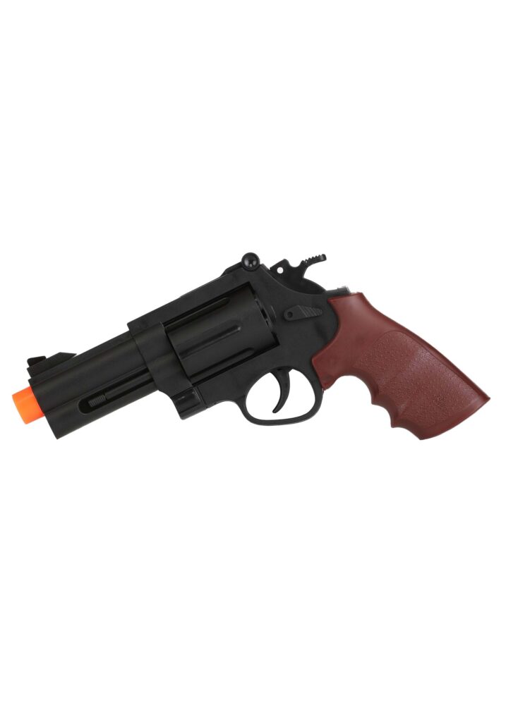 Design & DetailsCrafted from durable molded plastic, this toy revolver has the signature look of a classic short barrel sidearm. It features a detailed design, complete with a faux wood-textured grip and trigger guard, making it ideal for costumed lawmen, private eyes, or overdramatic stage villains.And because safety is key, the barrel is tipped with a bright orange marker so there’s no mistaking this for anything but a toy. It’s a simple, solid piece that adds a dose of rugged charm to your ensemble, without requiring a concealed carry permit or a gritty backstory.Make-Believe, Locked and LoadedWhether you’re gearing up for a Western showdown or just need a sidearm to go with your noir detective trench coat, this toy revolver prop adds the perfect finishing touch. It says, “I came prepared,” but also, “I’m definitely pretending.” And that’s the best kind of energy.