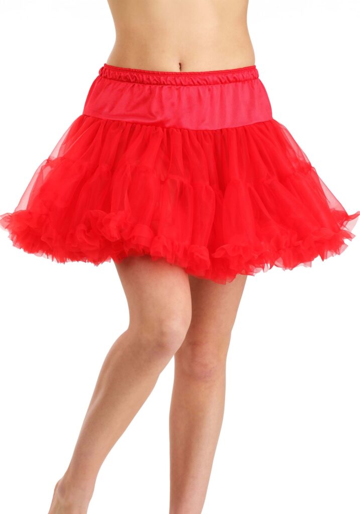 This piece is built on a solid red yoke made from soft polyester for comfort at the waist, while layers of ruffled nylon mesh cascade below in glorious, fluffy tiers. It’s got the perfect combo of structure and movement, sturdy enough to lift a dress, soft enough to dance in all night without plotting revenge against your outfit.The elastic waistband comes with anti-roll stitching, which means you can shimmy, shake, and spin without it folding over like an old yoga mat. Whether you’re layering up for a costume party or giving your everyday look an aggressive boost of sass, this petticoat has your back. Well, your waist. But with a lot of spirit.Twirl Power ActivatedNothing transforms an outfit faster than a little under-skirt drama, and this petticoat brings it in hot. Red-hot. Perfect for costumes, retro vibes, or just reminding people that yes, you did wear a tutu to brunch, and no, you don’t regret it. Pop it on, poof it up, and prepare to be the most delightfully over-the-top thing in any room.