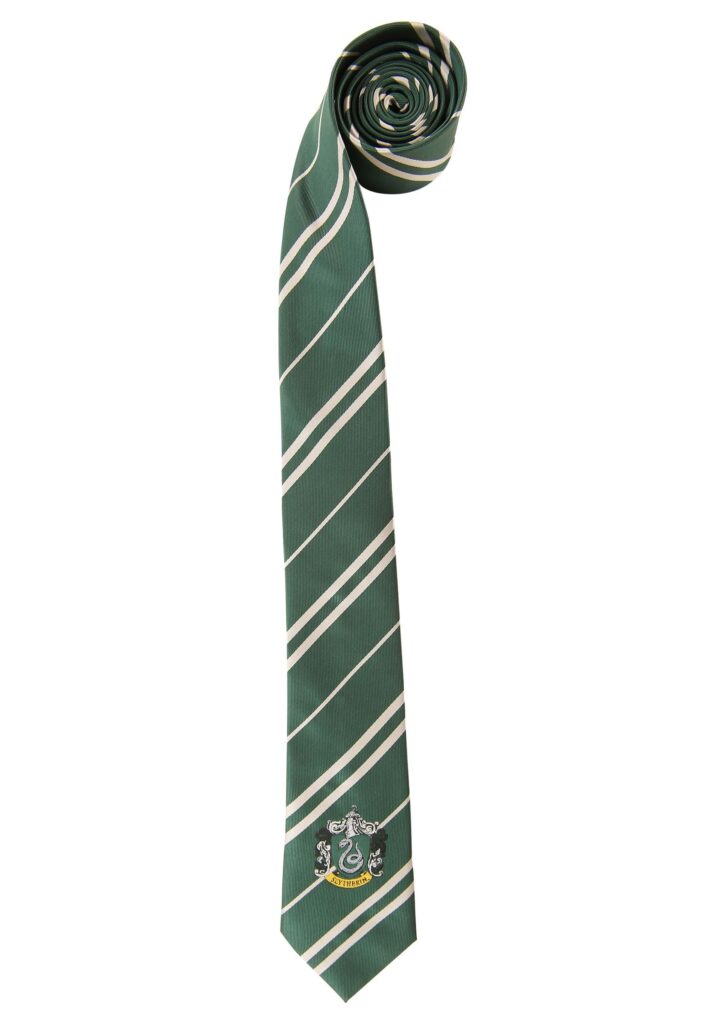Design & DetailsOfficially licensed and ready to make a statement, this tie pairs Slytherin’s colors of emerald green as a base and silvery-white diagonal stripes. The house crest at the bottom adds extra Slytherin appeal. It’s made to last all 7 years of your Hogwarts time, and then you can pass it down to your little sibling, who will no doubt carry on the family tradition of sitting in the Slytherin common room, as well!
