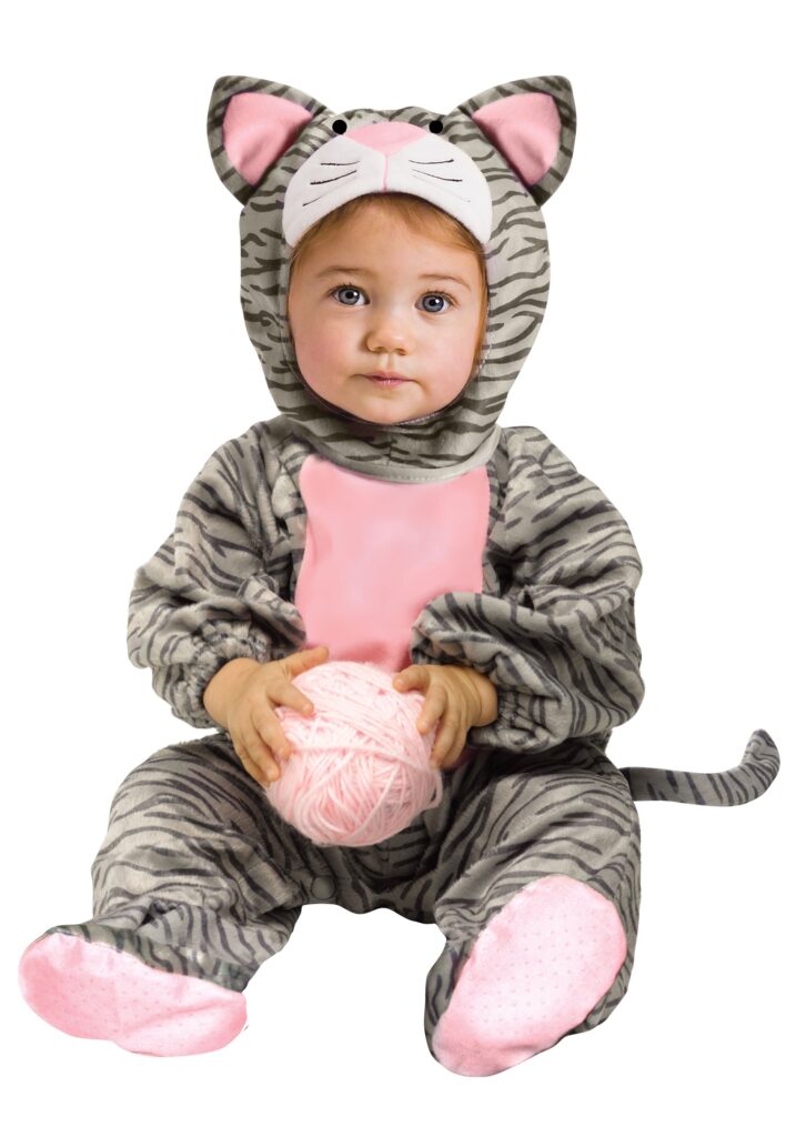 Take plenty of pictures of your toddler in this adorable costume, so they can see how cute they looked when they grow up into a cool cat, too! The soft one-piece jumpsuit has everything you’ll need to dress your little one up as a cuddly striped kitten, including a plush tail attached to the back, and a button-up hood with ears and a kitty face stitched into the top. Keep an eye on your yarn when this little kitten is scampering about, or they might run off with it!