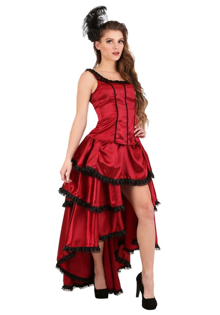 Fancy A Simpler Time?Take a step back this Halloween to the Old West. Back when the Cowboys weren’t a football team but rather the root’nest, toot’nest fellas around. Before automobiles, when horse-drawn wagons were the fastest rides this side of the Mississippi. Before everyone had their celebrity crushes and instead they had their favorite gals at the local saloons. When you toss on this Sultry Saloon Girl Costume, you will, without a doubt, be everyone’s favorite working-class lady in the Wild West. Every cowpoke will want your charisma to liven up their table. Every cowgirl will wish they had the confidence and magnetism it takes to be the number one saloon gal. Every saloon owner will wish they could afford to hire you at their establishment. And with a glamorous outfit like this, it shouldn’t come as any surprise.Details & DesignThe velvet red bodice and matching skirt will make you the embodiment of luxurious elegance. A hint of mischievous fun is also added to the look thanks to the black frill lining as well as the matching black boning design. The included headpiece really brings the whole outfit together. The black rose is a testament to your beauty as well as a thorny reminder that you’re not afraid to draw blood. The matching black feathers on the headpiece add the perfect sprinkle of playfulness to the getup. Personalize this costume when you add a feathery boa as well as some glitzy jewelry. A fancy fan or a black dancer cane would also make wonderful additions to this costume.Put On a ShowGive everyone a blast from the past at any costume party you attend, when you toss on this Sultry Saloon Girl costume. Everyone will wish they were back in the Old West, kicking in the batwing doors at their favorite drinking hole to see you entertain the masses with your lovable, spunky attitude.