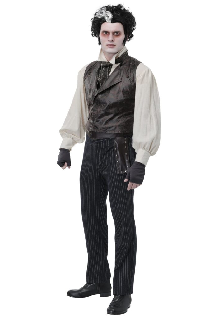 Going for a shave? Seems like a pretty innocent thing to do. But you never know what’s going to happen in the dark and gloomy streets of London. You never know if your hairdresser is unhinged or you pie maker is half baked. Our advice for a Londoner of the 1800’s? Stay home! We’d say an intact neck is worth the beard! We would stick to a vegetarian diet if it was between that or consuming one of Mrs. Lovett’s infamous pies, no matter how delicious they smell! We’ve had plenty of mysterious food in our day. If you’ve ever opened a can of SPAM you might have wondered what all went in that machine before that alien like substance was produced. Still, people don’t pause before slicing it up and putting it on some bread with mayo and a piece of lettuce. Then there are those packaged desserts, cake on the inside and a mysterious hardened frosting on the outside. The texture is a little like a cake and a little like a sponge but you’d have to have a Master’s in chemistry to interpret the ingredients list. The point is, we’re all guilty of eating that mystery food every once in a while so we should be grateful that we’ve never lived in the Sweeney’s neighborhood. After all, mysterious food is sometimes surprisingly delicious. You don’t have to go into business to become the demon barber of Fleet Street, just don this exclusive costume. You’ll look like a truly unhinged Londoner in the full sleeves, leather textured vest, and cravat. With a holster to keep your sharp friends in you’ll be ready for when that judge finally stops in for a shave. Tell him to keep still, it’s going to be a close one!