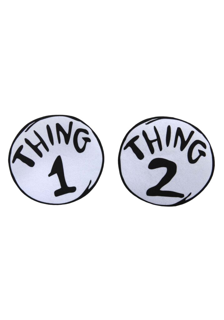 Show off your status as friends for the longest with The Cat in the Hat Thing 1 and 2 Patches! These 7-inch labels fit right on your t-shirt or any clothing you like. Create matching costumes by reading instructions printed for convenience. With Thing 1 on your belly and Thing 2 on your friend, or perhaps the reverse if you care, your look will be charming and officially licensed for all your Halloween affairs! Signature Circles.