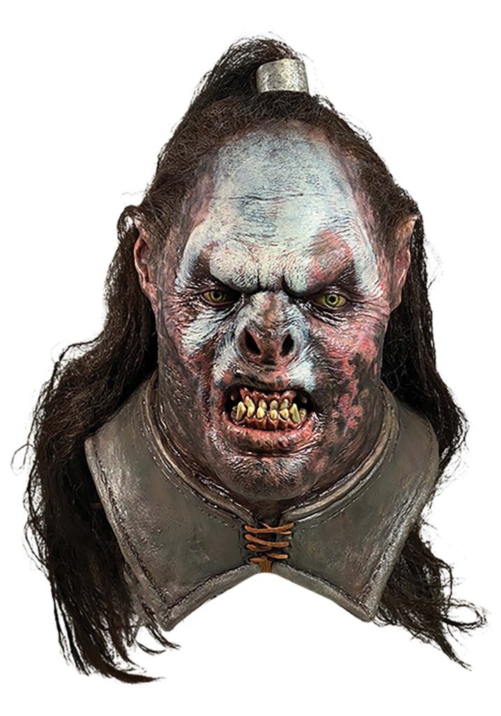 Transform into Saruman’s second in command when you don this officially licensed Lord of the Rings Trilogy Lurtz Mask! The full-head mask, complete with fake teeth, a faux leather collar, and synthetic hair bound by a silver-tone ponytail accessory, will have the Fellowship shivering in its shoes – at least until you’re decapitated by Aragorn! That guy is the worst. One Ring to Rule Them All Lurtz is certainly a servant of the One Ring! Chase after the halflings and recover the Precious in this awesome mask.