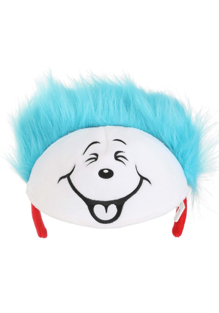 Cause mass mayhem in the cutest possible way while wearing your officially licensed Thing 1 & 2 Costume Face Headband! A sturdy headband is covered in soft fabric and features an attached Thing headpiece printed with a grinning face. Blue faux fur is sewn across the top to look like hair. The Life of the Party.