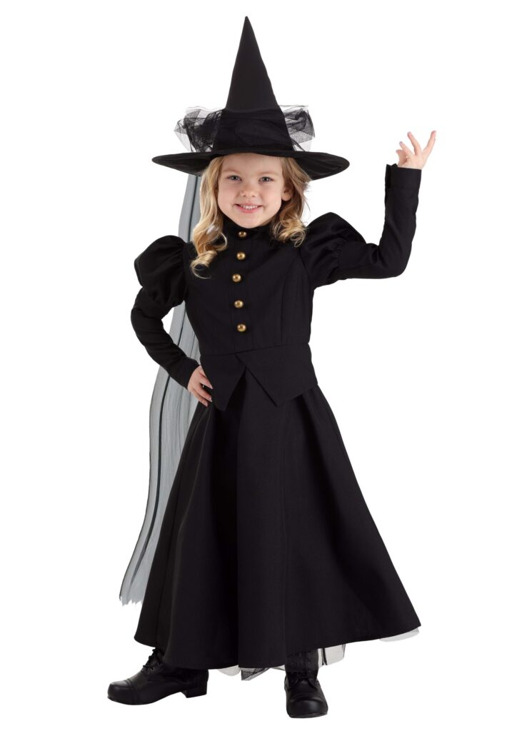 Your toddler will look devilishly sweet in this Girl’s Deluxe Classic Witch Costume for Toddlers! The exclusive outfit includes a long black poplin dress that zips up the back and is styled to look like a jacket over a skirt. The princess-cut bodice has a high collar and gold-tone buttons marching down the middle. The leg o’ mutton sleeves are adorably old-fashioned and pair well with the sweeping skirt. An included black petticoat is sewn with layers of tulle to give the skirt extra body. Add the tall, pointy witch hat with its mesh sash! Poof, You’re a Frog! Most of the time, your little witch is happy to use her powers for good. She especially enjoys helping her friends to collect as much Halloween candy as possible while trick-or-treating. But there are definitely those times when you find her playing with toys in the living room when you clearly remember telling her to go to bed, and you’d swear that she teleported there by magic.