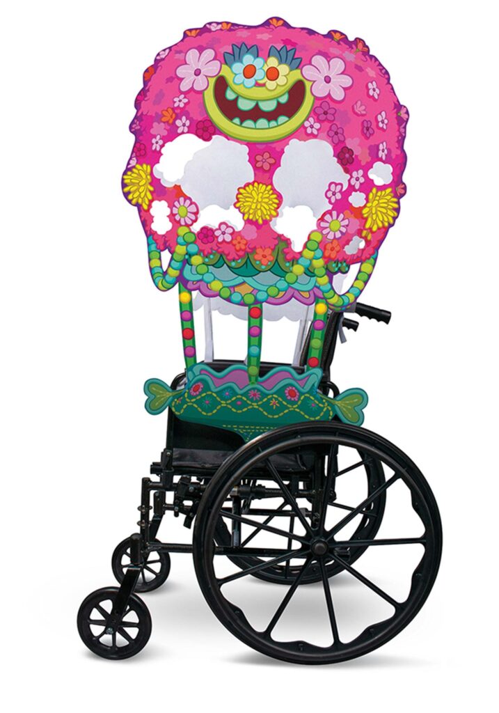 Challenge AcceptedAs a parent, one of your greatest joys is making all of your child’s dreams come true. So when your kiddo asks to feel just like Poppy soaring away in her hot air balloon this Halloween, you may be feeling both inspired and a bit daunted. Turning your human child into Poppy, Queen of the Trolls, is a big enough challenge. But making them feel like they are taking to the sky in a fantastic flying balloon on a world tour of the troll tribes? Well, that task may feel near impossible. Have no fear, oh dedicated one! This Trolls Adaptive Wheelchair Cover can make your challenge a cinch to complete. Just pick up a peppy Poppy costume (sold separately) and then assemble this clever disguise over your child’s standard wheelchair to watch their wildest troll-themed dreams come true before your very eyes! Design & DetailsThis tricked-out wheelchair kit comes with plastic rods that assemble as a frame over your child’s chair. The cover fits over the top and is designed to turn the structure into Poppy’s flower-drenched hot air balloon. Officially licensed (and officially awesome), this accessory is any Trolls fan’s wildest floral fantasy come true. Trick or treating has never felt so magical!