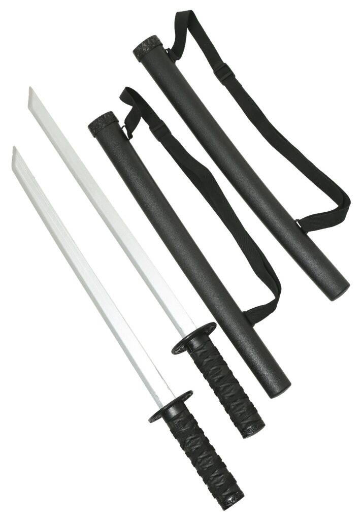 Costumes.com had the opportunity to visit with a wise ninja master in an effort to add a level of authenticity to our exclusive line of costumes and accessories. Sure, we had to travel to Japan, and attend an ancient dojo hidden on a distant mountaintop to consult with him, but once we got there, it was totally worth it. The words he uttered that day will forever be etched in our collective memory… “Two swords are better than one.”I guess you could say the idea stuck with us because, lo and behold, here is our Two Sword Ninja Set, ready for action! Yes, they’re just plastic prop swords, and you shouldn’t actually plan on going into battle with them. But if you’ve got a big night planned as a ninjitsu master, these swords will be the perfect way to complete your costume look. With twins swords sheathed in scabbards on your back, you’re guaranteed to look like the real deal. And once you unsheath them… well, the whole room better be ready for some action. Prepare yourself to face any enemies (or at least have a whole lotta fun pretending to) when you get this Two Sword Ninja Set!