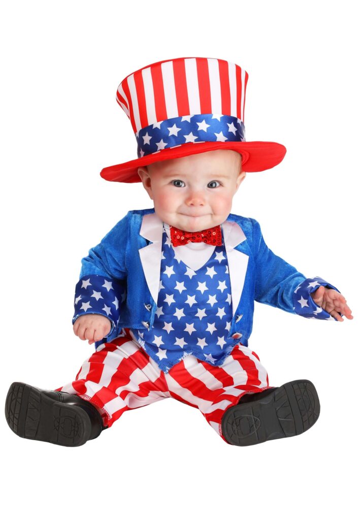 It’s time to salute the cutest patriot in town, because nothing says “America” quite like a baby in an Uncle Sam costume. Whether they’re ringing in the 4th of July or just showing off their star-spangled swagger at Halloween, your little one will be stealing hearts in this getup. With those round cheeks and that towering top hat, they’ll look ready to campaign for more nap times and unlimited bottles! Prepare for people to “aww” so hard they’ll need a moment to recover. This outfit is a baby-sized celebration of freedom, complete with bold red stripes and enough stars to make the flag blush. Just imagine that little hand pointing at you like, “I want YOU… to give me a cookie! ” And honestly, who could resist?