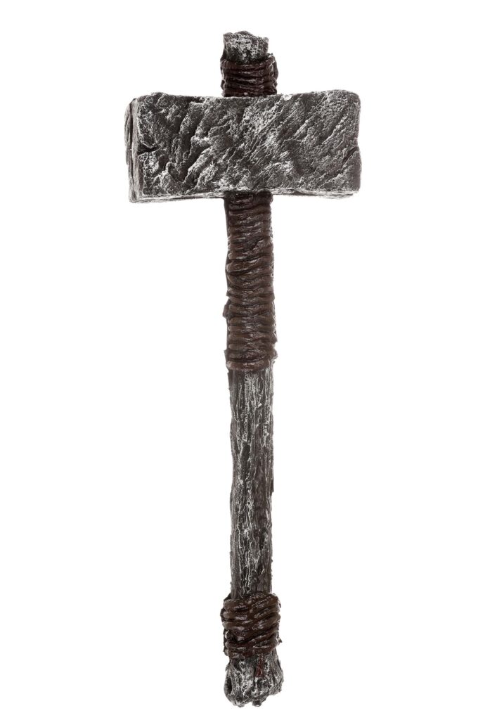 Hammer TimeYou’ll be ready to pillage all of the costume parties this Halloween once you complete your costume with this Sledge Hammer Prop Viking Weapon. A lot of warriors think that the classic sword and shield combo is the way to go. If that’s what works for you, go right ahead. However, if you learn how to properly wield a battle hammer, then you will be a force to be reckoned with on the battlefield. You’ll smash your way to victory!While most people think of a hammer as a tool for building, the Vikings used the hammer to destroy their enemies. One good blow would send their foes flying back and put them down for the count.Many of your friends and neighbors at the costume parties will be dressed as scary monsters and iconic horror movie villains. But you can still be the most frightening person in the room when you complete your costume with this awesome realistic prop!The Smashing DetailsThis Made By Us accessory has been designed by the very best when it comes to Viking weaponry. Crafted to have the appearance of wood, rope, and forged iron, this prop truly looks to be from a different era. Comfortably wield this replica weapon and have the ultimate Viking costume this Halloween.
