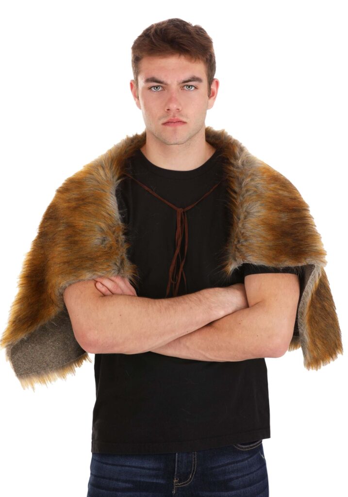 Made from 80% acrylic and 20% polyester long-pile luxury faux fur, this cloak not only replicates the look of a real wolf pelt but also offers warmth and durability. It’s as functional as it is fashionable, providing you with the strength of a wolf and the rugged charm of a Viking hero. The faux rawhide cord ties at the shoulders ensure a secure fit, allowing you to engage in hearty Viking celebrations or fierce battle reenactments without any wardrobe worries. Approximately 19″ long at the center back, this officially licensed Vikings Ragnar Lothbrok Wolf Pelt Cloak fits most adults.The Legacy Continues.