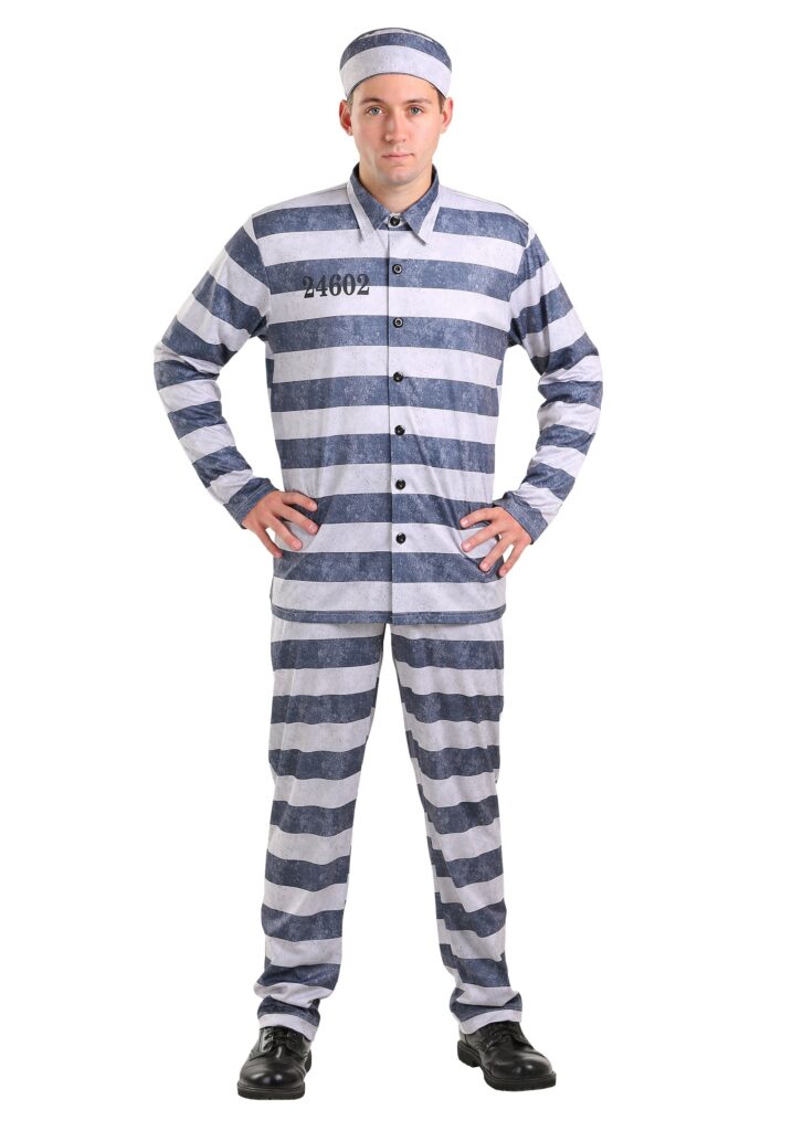 We don’t care who you are, where you’re from, what you did, as long as you. . . keep breaking rocks with the chain gang! Come on, get cracking! Sometime in the last hundred years, prisons decided to change their uniforms. We don’t know why. We wish it hadn’t happened. But somewhere along the line orange become the new gray stripe. It’s okay, these days when you don the gray stripe people will know you’re being really cool instead of assuming you’re an escaped convict. In fact, if you are indeed a fugitive, this might be a good way to go. Hide in plain sight. Harrison Ford could’ve used that tip! This costume includes striped pants, shirt, and hat. The ensemble is a pale grey with dark bluish gray stripes. The pants are easy on with an elastic band at the waist. The collared shirt buttons down with small black buttons and has numbers on the chest. Now, this doesn’t come with the faux handcuffs but you can definitely pick up a pair in our many prisoner costumes. If you really want to go above and beyond you can get yourself a ball and chain. So, get out there and show them what your retro prisoner self is made of. Just don’t blame them if they check their wallets when you’re around. And hey, if you like this look, try singing “Man of Constant Sorrow” at karaoke. We have a feeling that it might be a hit.