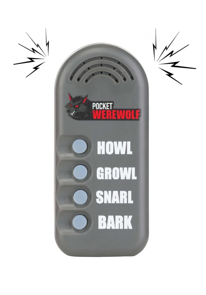 This gray plastic sound box is compact enough to hide in a pocket but loud enough to startle innocent bystanders. Each button is clearly labeled, HOWL, GROWL, SNARL, and BARK, so you know exactly what chaos you’re about to unleash. Tap one and you’ll hear an appropriately monstrous noise blast out of the built-in speaker.No Wi-Fi, no syncing, no werewolf whispering certification needed. Just press and growl. The design is simple and sturdy, so even if your inner beast is all paws, you’ll still operate it just fine.Let the Fur Fly.